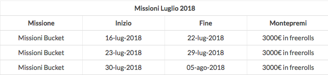 Completa le Missioni di Luglio ideate da Eurobet! Le Bucket Missions hanno in palio 9.000€ totali in freeroll. Completale tutte, se vuoi anche da mobile!